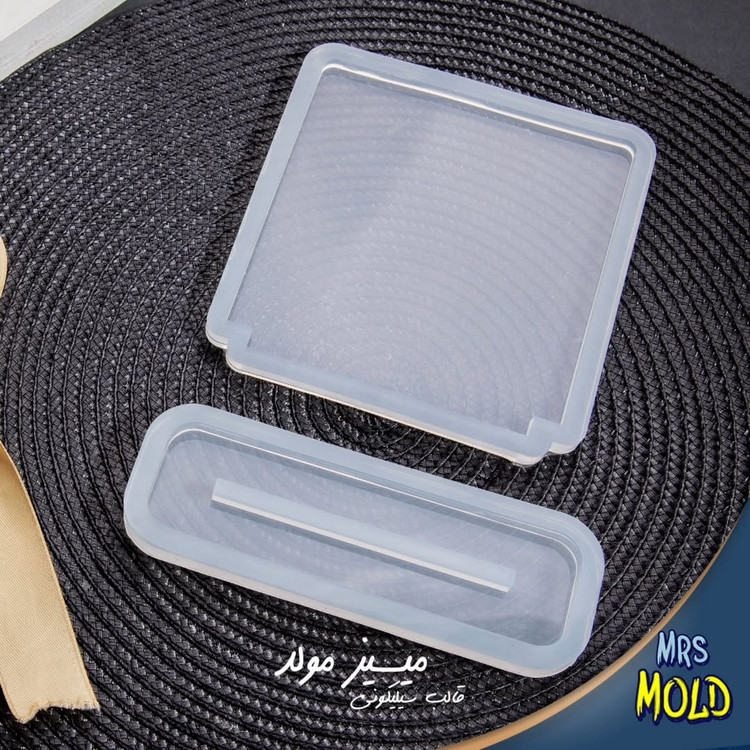 قالب استند مربع بخش مربع ۱۲×۱۲ سانت با عمق ۵ میلی متر پایه با عمق ۸ میل که روی میز میشینه.