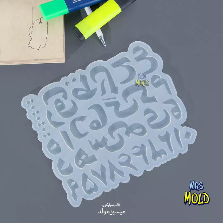 قالب سیلیکونی حروف فارسی با اندازه حروف ۴ سانت و عمق ۵ میلی متر مناسب برای اکسسوری و هنر رزین.
