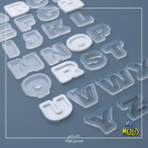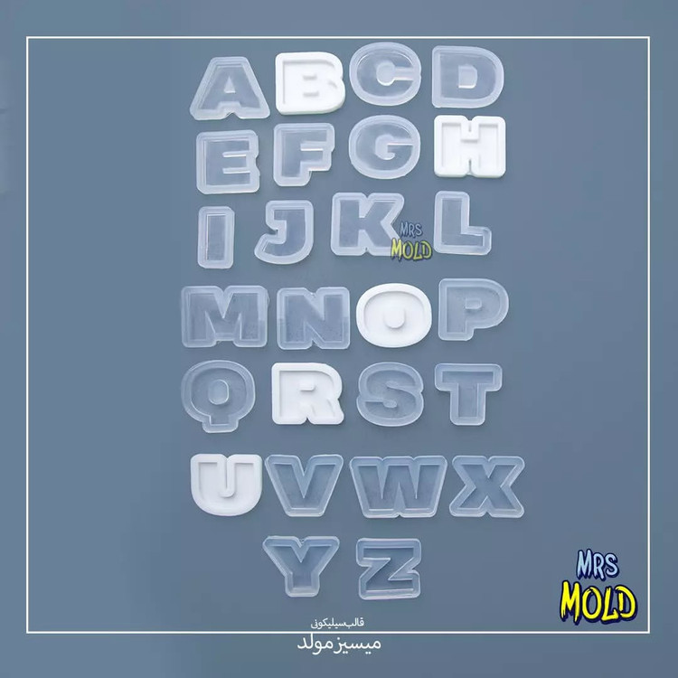 قالب سیلیکونی حروف انگلیسی با طول حروف ۴ سانت، عرض بین ۱/۳ تا ۱/۷ سانت و ارتفاع ۵ میلی متر. هر حرف ۵۰ تومان و حروف i، j، l هر کدام ۳۵ تومان.