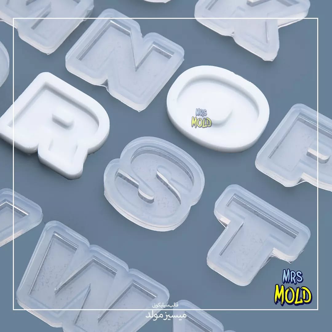 قالب سیلیکونی حروف انگلیسی با طول حروف ۴ سانت، عرض بین ۱/۳ تا ۱/۷ سانت و ارتفاع ۵ میلی متر. هر حرف ۵۰ تومان و حروف i، j، l هر کدام ۳۵ تومان.